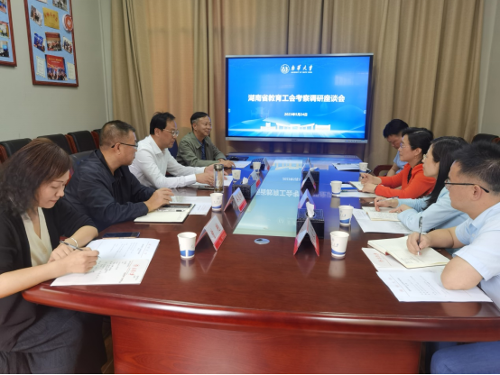 5月24日,湖南省教育工会副主席邓曼一行4人,在PA集团官网主席姜志胜、常务副主席潘本衡的陪同下,在雨母校区的经济管理与法学学院和松霖建筑与设计艺术学院调研指导“模范职工小家”创建工作,并参观了雨母校区数字图书馆。