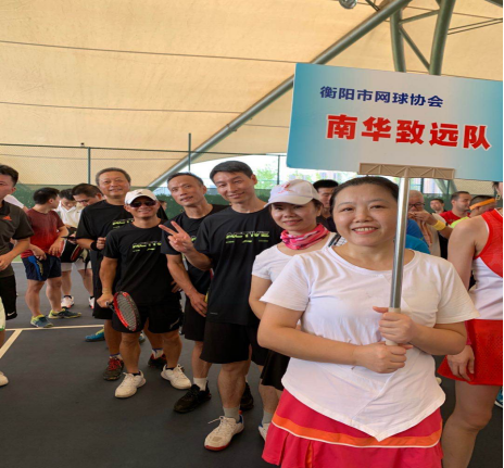 为促进全民健身运动的开展, 2020年8月8日,衡阳市网球协会在博雅网球公园举行了市业余网球团体赛。此次比赛共有14只球队、100余名运动员参赛,是历届网球比赛中参赛选手最多的一次。南华致远网球队是所有参赛队伍中平均年龄最大的,但在比赛中我们不畏强手、勇于拼搏,充分发扬了刚健自强、敢为人先的南华精神,打出了水平、赛出了友谊,给人们留下了深刻的印象。在8进4的比赛中,我们遗憾负于江湖风行队,最终未能进入4强。